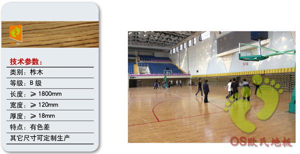 面層地板:楓木、柞木,體育運(yùn)動(dòng)木地板厚18mm至22mmm 寬為50mm至130mm 長(zhǎng)度為300mm至2400mm;