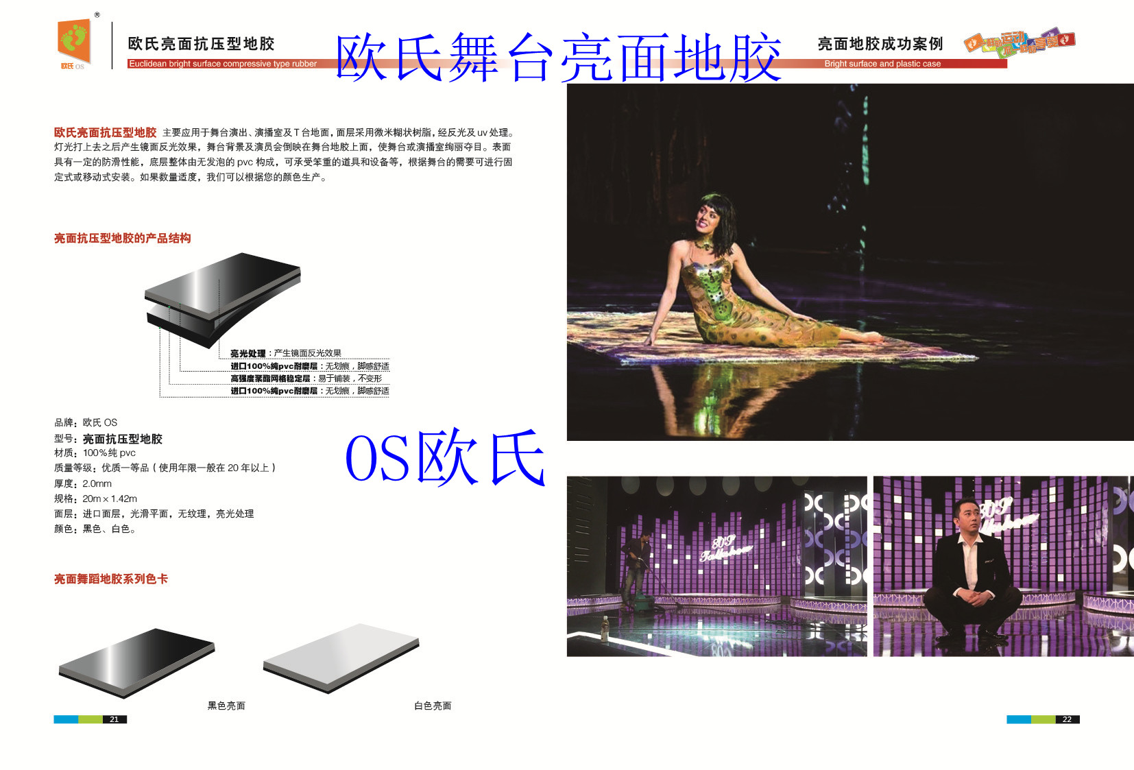隨著文化生活水平的逐步提升,一些較大型的會展演出活動也慢慢增加起來,特別是話劇、歌劇、綜藝的舞臺節(jié)目對于地面裝飾材料的選擇一般是以個性化、絢麗為主,為了配合燈光效果,地面材料的使用一般是地毯,但是地毯顏色比較單一,不能隨心所欲的配合整體展示效果。于是我公司在原有專業(yè)舞蹈地板的基礎(chǔ)上開發(fā)出了專業(yè)的亮光效果舞臺地板,亮面舞臺地板的顏色可根據(jù)舞臺整體裝修效果進行定制,色彩豐富清亮醇正,具有無劃痕效果,還可以承受笨重的道具和設(shè)備等。