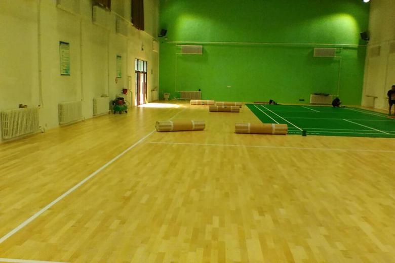 北京歐氏地板有限公司近期承接大興安嶺加格達(dá)奇財(cái)政局工地羽毛球場木地板鋪設(shè)工程,該財(cái)政局負(fù)責(zé)人選擇的是楓木A級下線體育木地板,鋪設(shè)面積500多平米,現(xiàn)已鋪設(shè)完成.